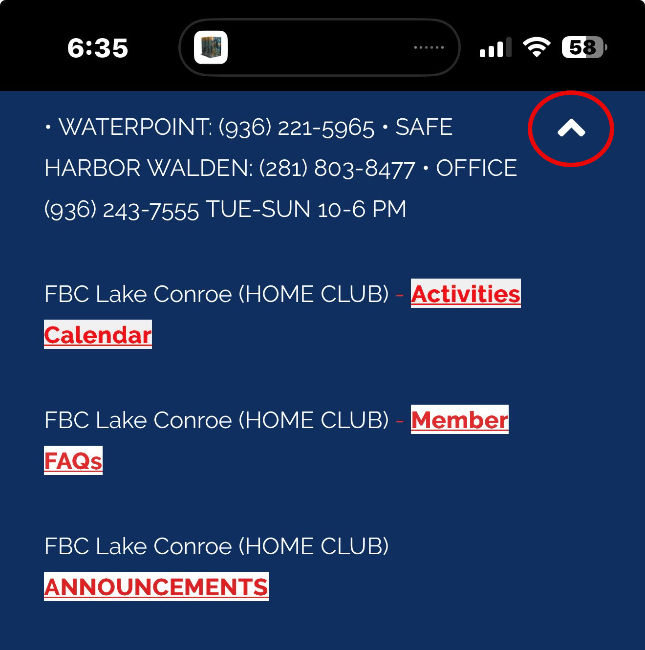 ⏺️ FAQS: Access to this link is available anytime on the Reservations Website URL (not mobile app). Click small down arrow in upper right corner (see image).